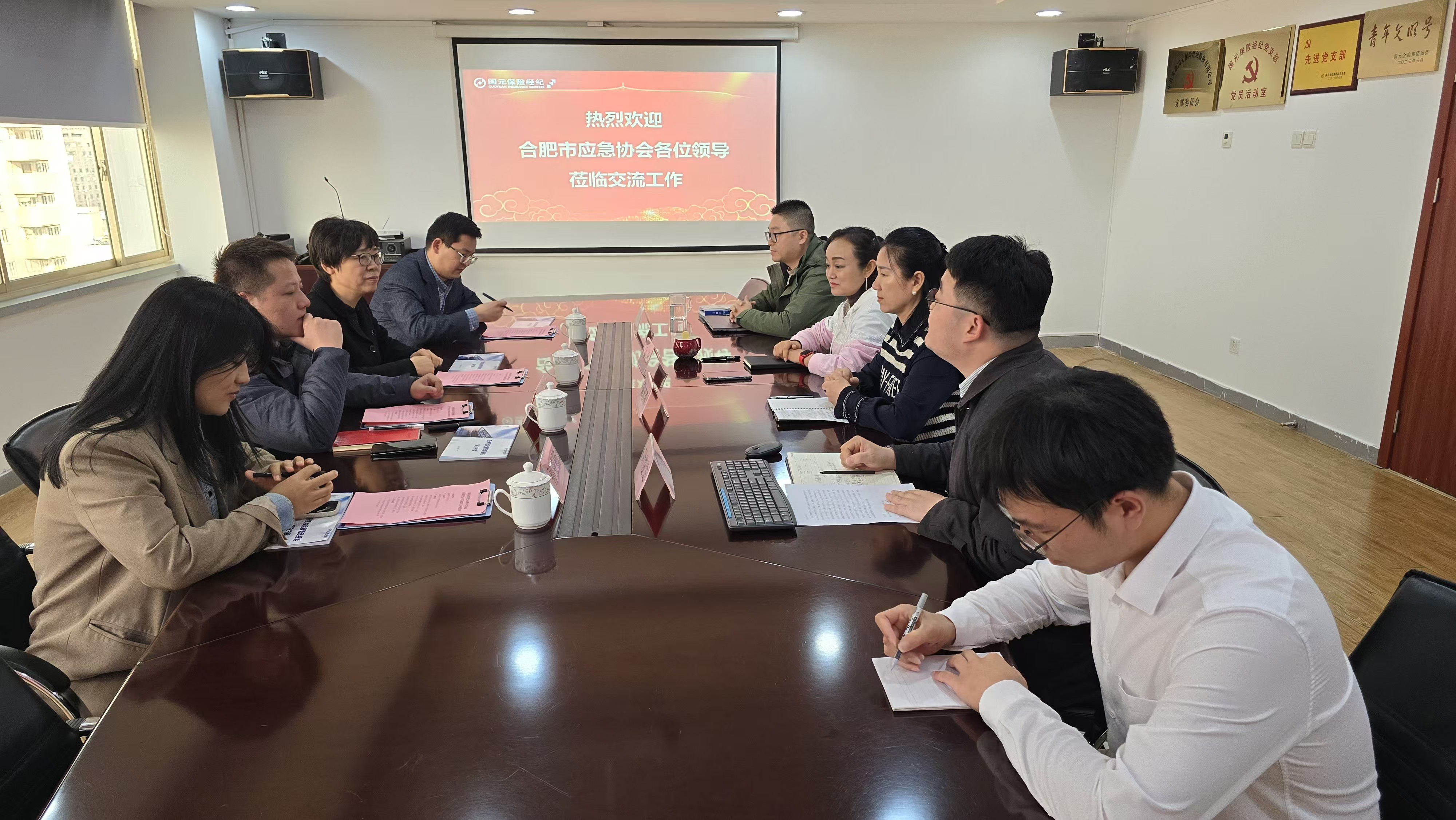 合肥市應急協會秘書處工作人員,國元保險經紀副總經理戴忠燕及相關人員參與交流座談。
